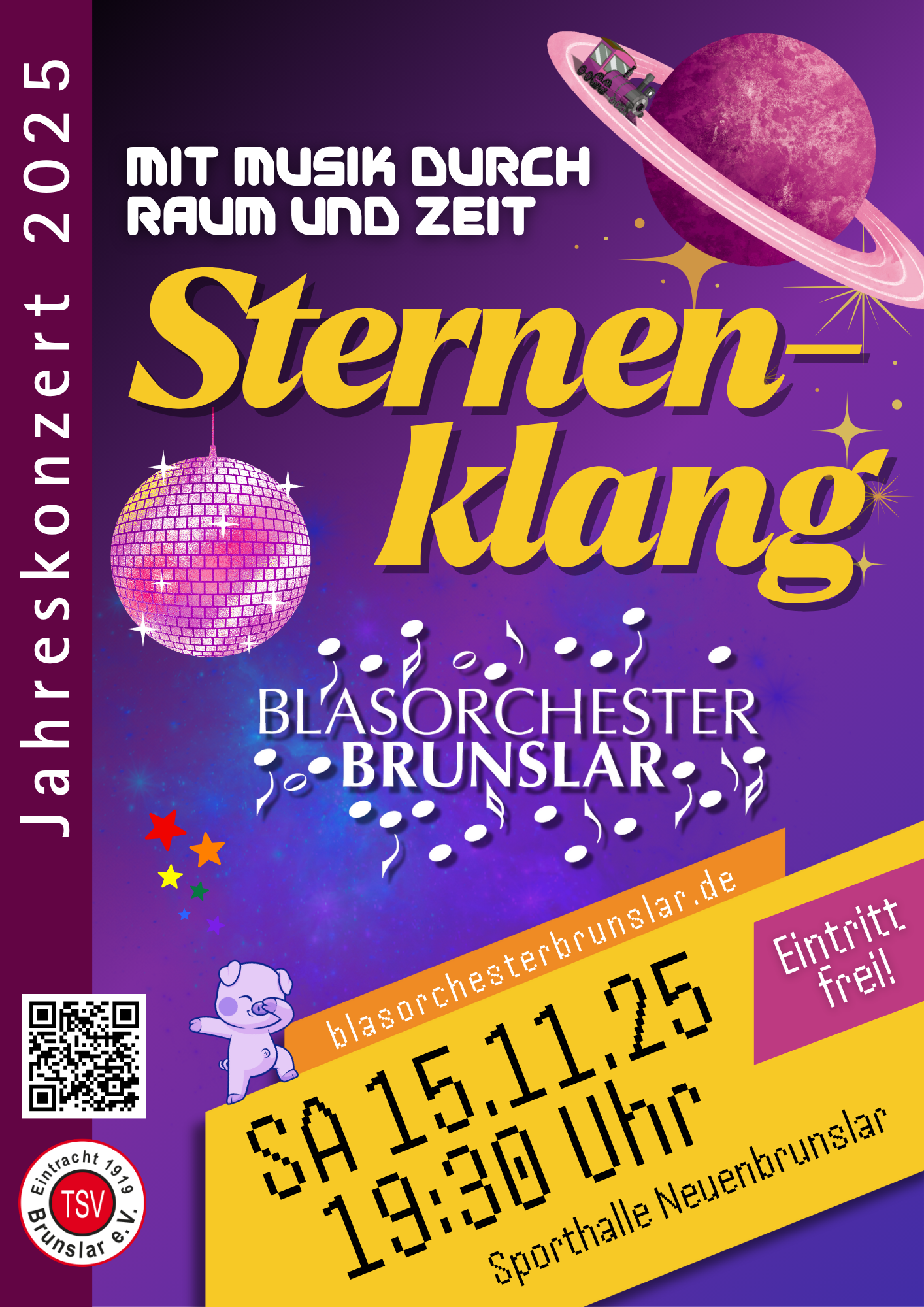Am 15. November 2025 lädt das Blasorchester Brunslar zu einer musikalischen Reise durch Raum und Zeit ein. Auf dem Programm stehen Filmmelodien aus den unendlichen Weiten des Weltraums sowie unvergessene Hits vergangener Jahrzehnte.
