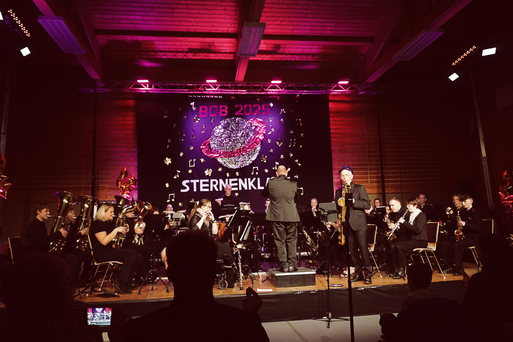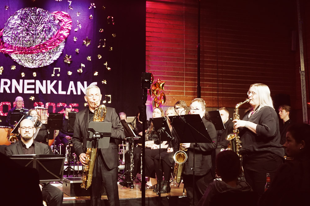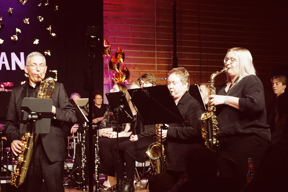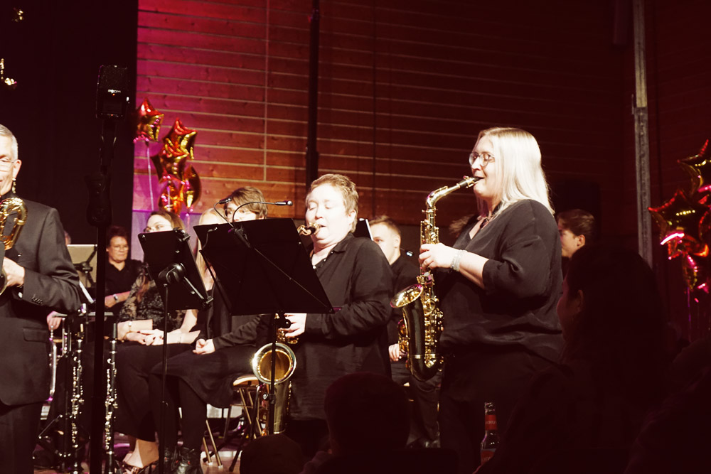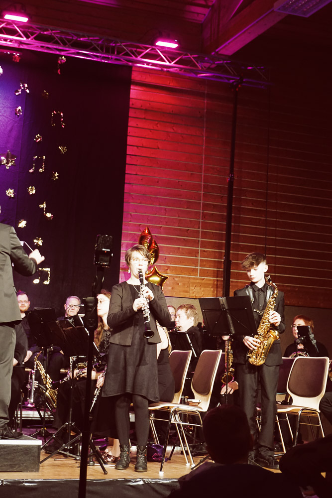 Danach trat das Saxophon-Ensemble Saxolution – bestehend aus Musikerinnen und Musikern des Orchesters – auf und überzeugte mit viel Gefühl und hoher Präzision in Only You von den Flying Pickets sowie dem fröhlichen Cantina Band aus Star Wars.